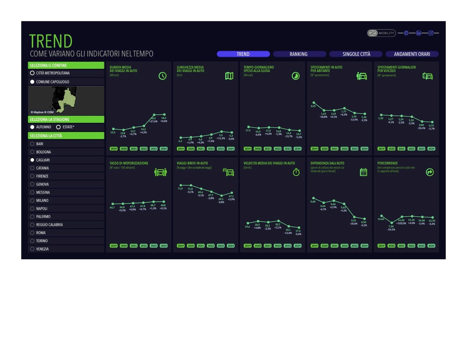 In questa pagina sono disponibili i dati sulla mobilità della città confrontati nel tempo e le notizie, aggiornate quotidianamente, sulle novità relative a trasporto pubblico, mobilità attiva, mobilità condivisa ed elettrica, regolazione del trasporto privato.