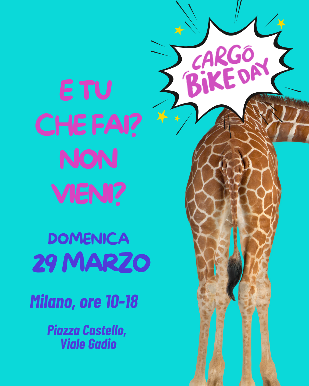 Da viale Gadio, accanto a piazza Castello partirà la Cargo Bike Parade, una pedalata che toccherà alcuni luoghi simbolici della città. Nella sua prima edizione la Cargo Bike Parade ha portato in strada oltre 500 persone su cargo-bike, bici, monopattini, roller-blades.