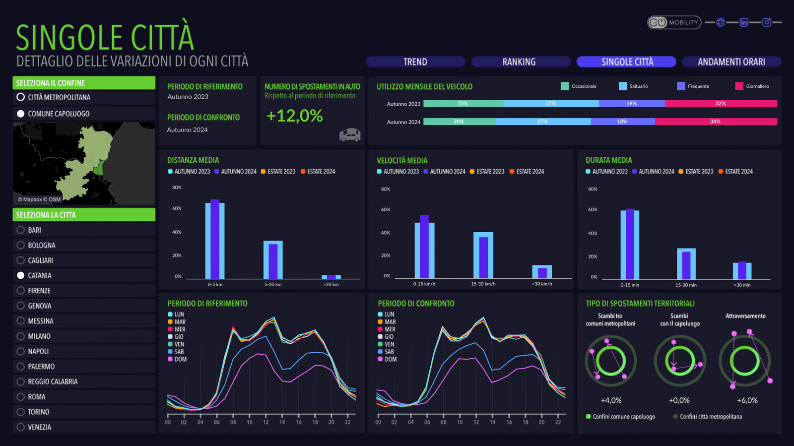 In questa pagina sono disponibili i dati sulla mobilità della città confrontati nel tempo e le notizie, aggiornate quotidianamente, sulle novità relative a trasporto pubblico, mobilità attiva, mobilità condivisa ed elettrica, regolazione del trasporto privato.