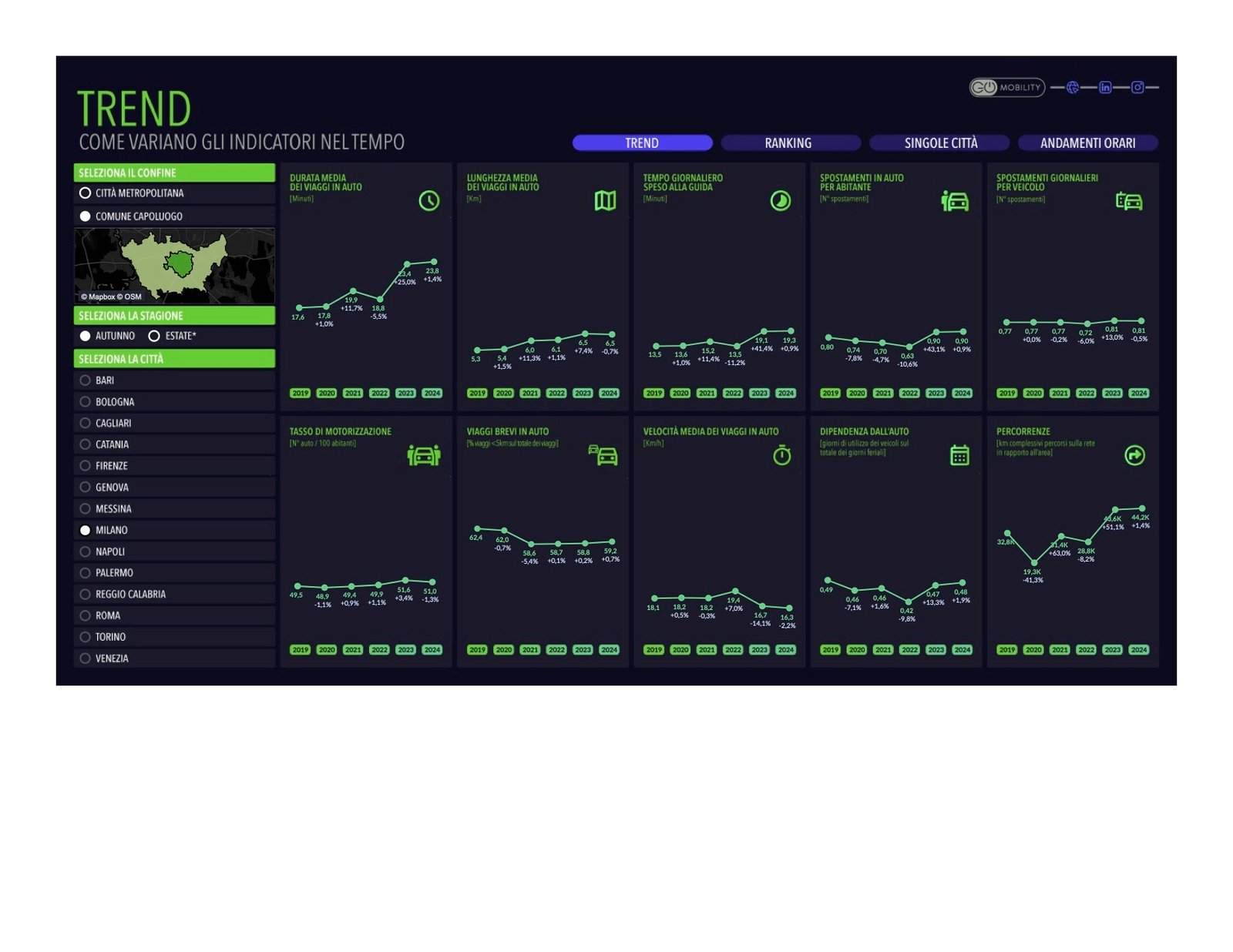 In questa pagina sono disponibili i dati sulla mobilità della città confrontati nel tempo e le notizie, aggiornate quotidianamente, sulle novità relative a trasporto pubblico, mobilità attiva, mobilità condivisa ed elettrica, regolazione del trasporto privato.