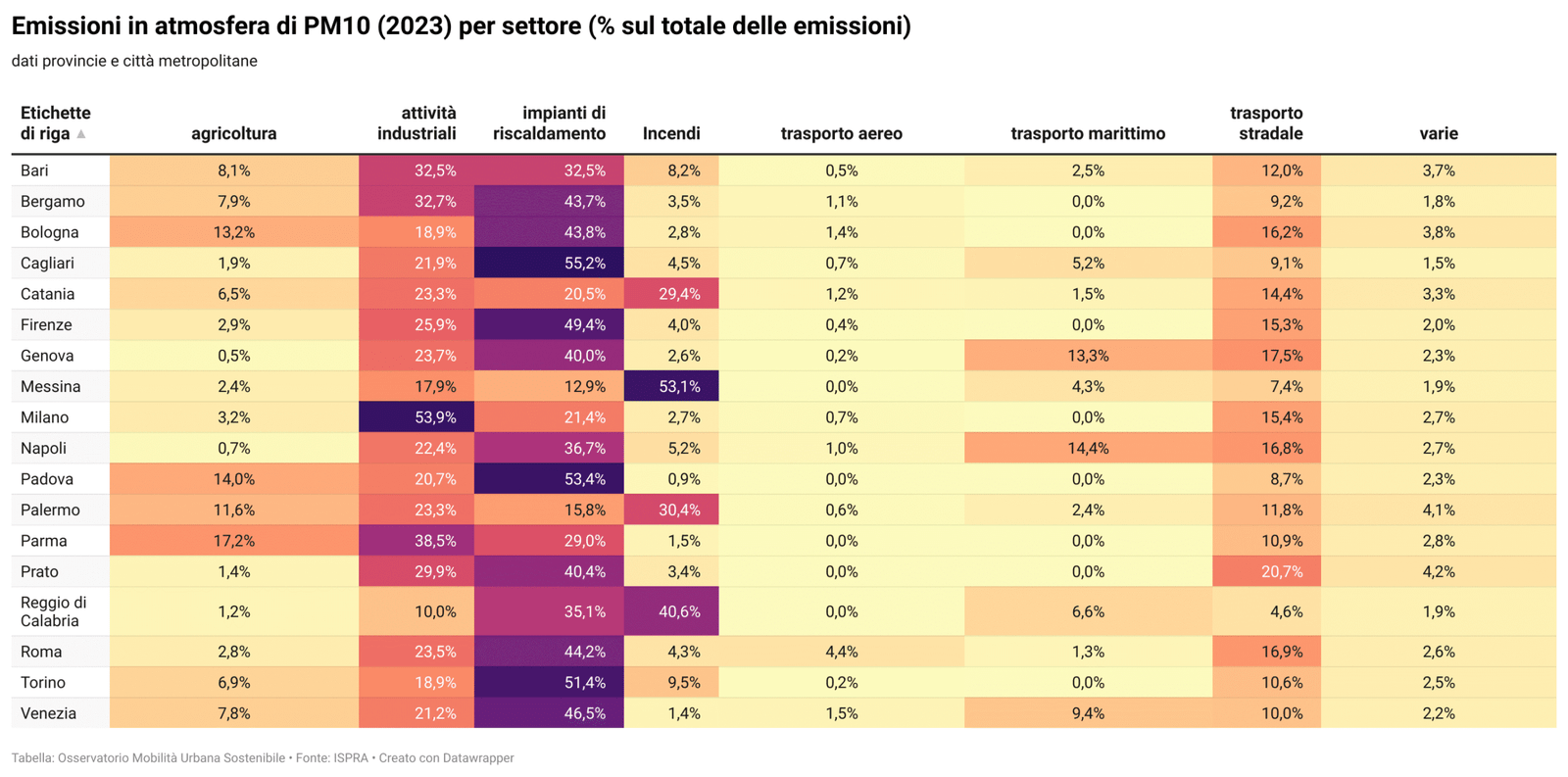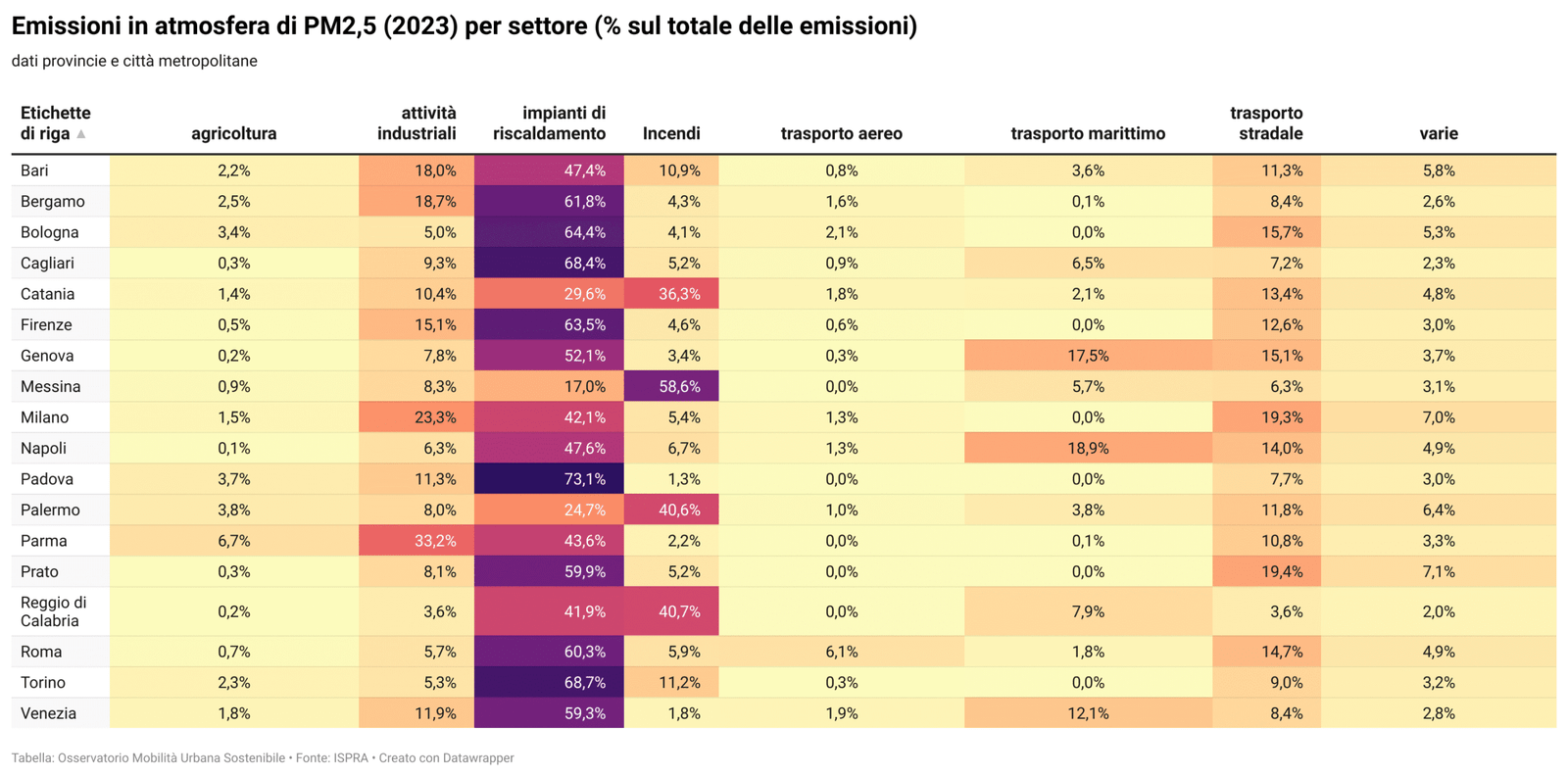 Dall’ Urban PM2.5 Atlas, Air Quality in European Cities del JRC (Centro di Ricerche Comuni dell’Unione Europea) sono tratte le schede sulla quantificazione delle fonti emissive di PM2,5.