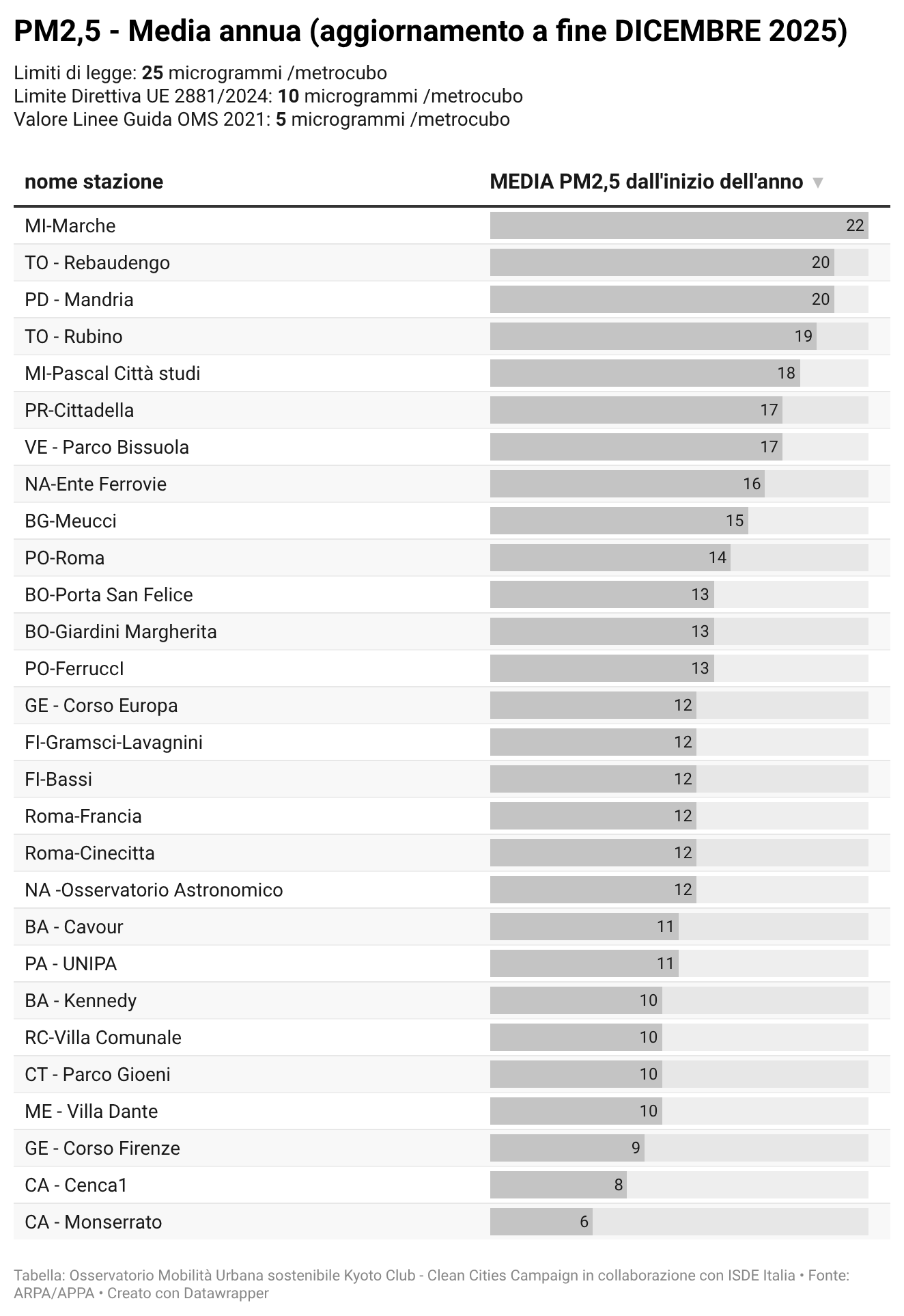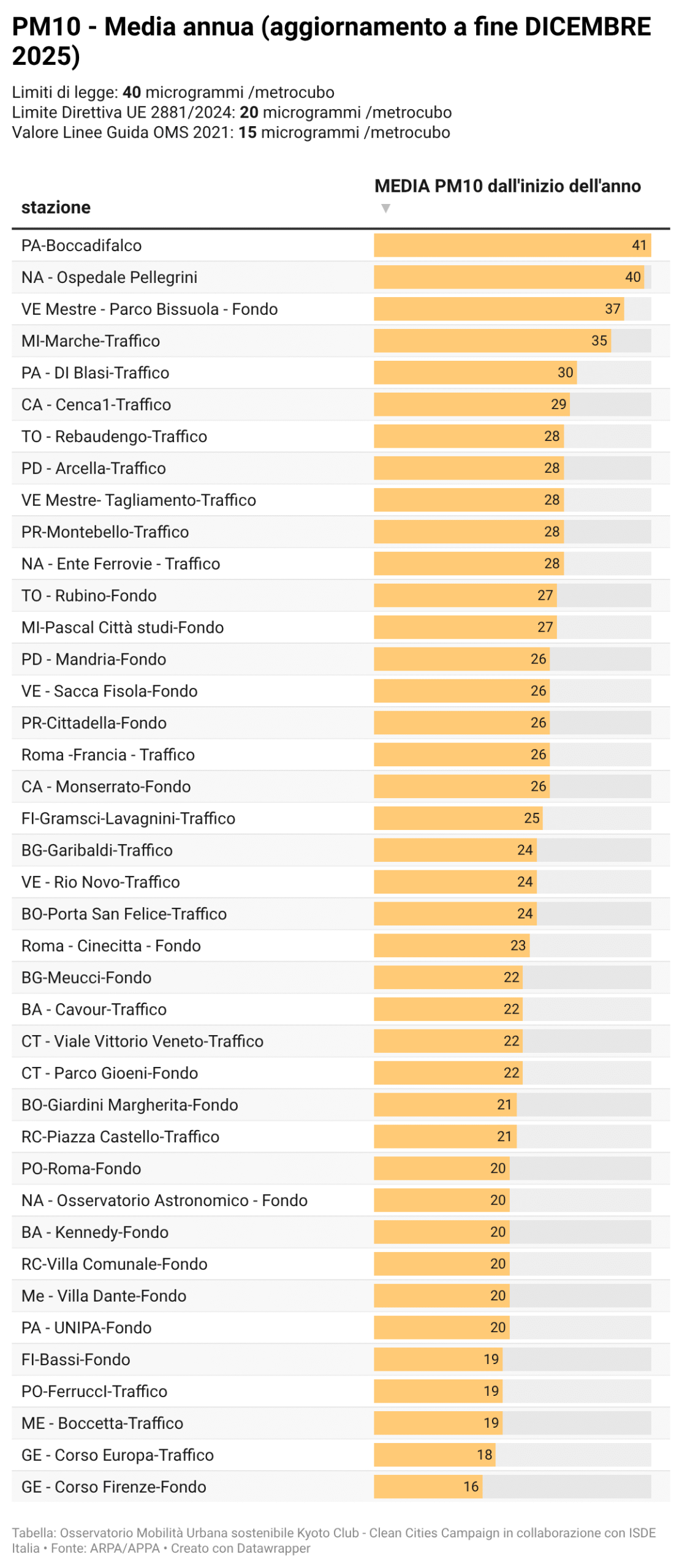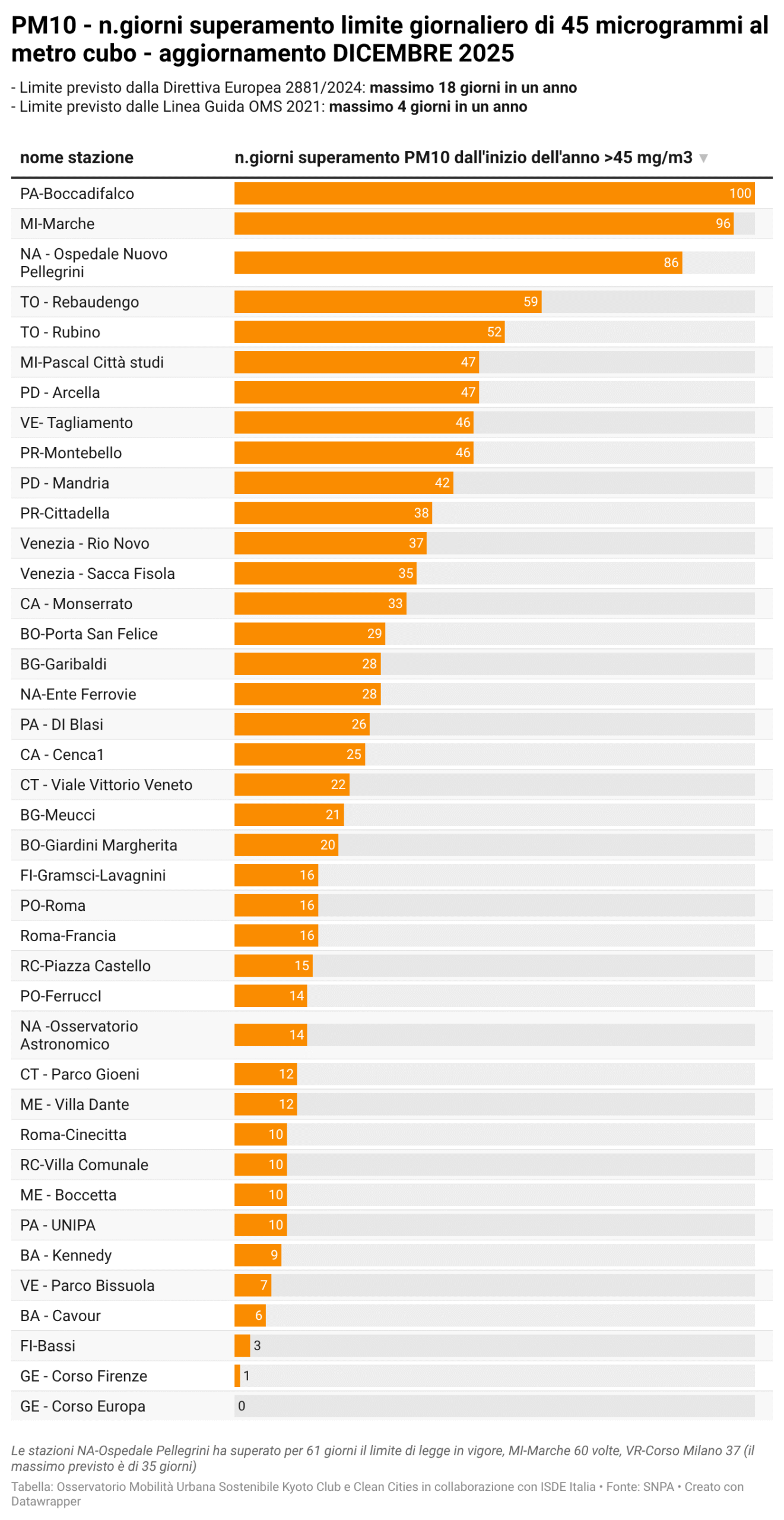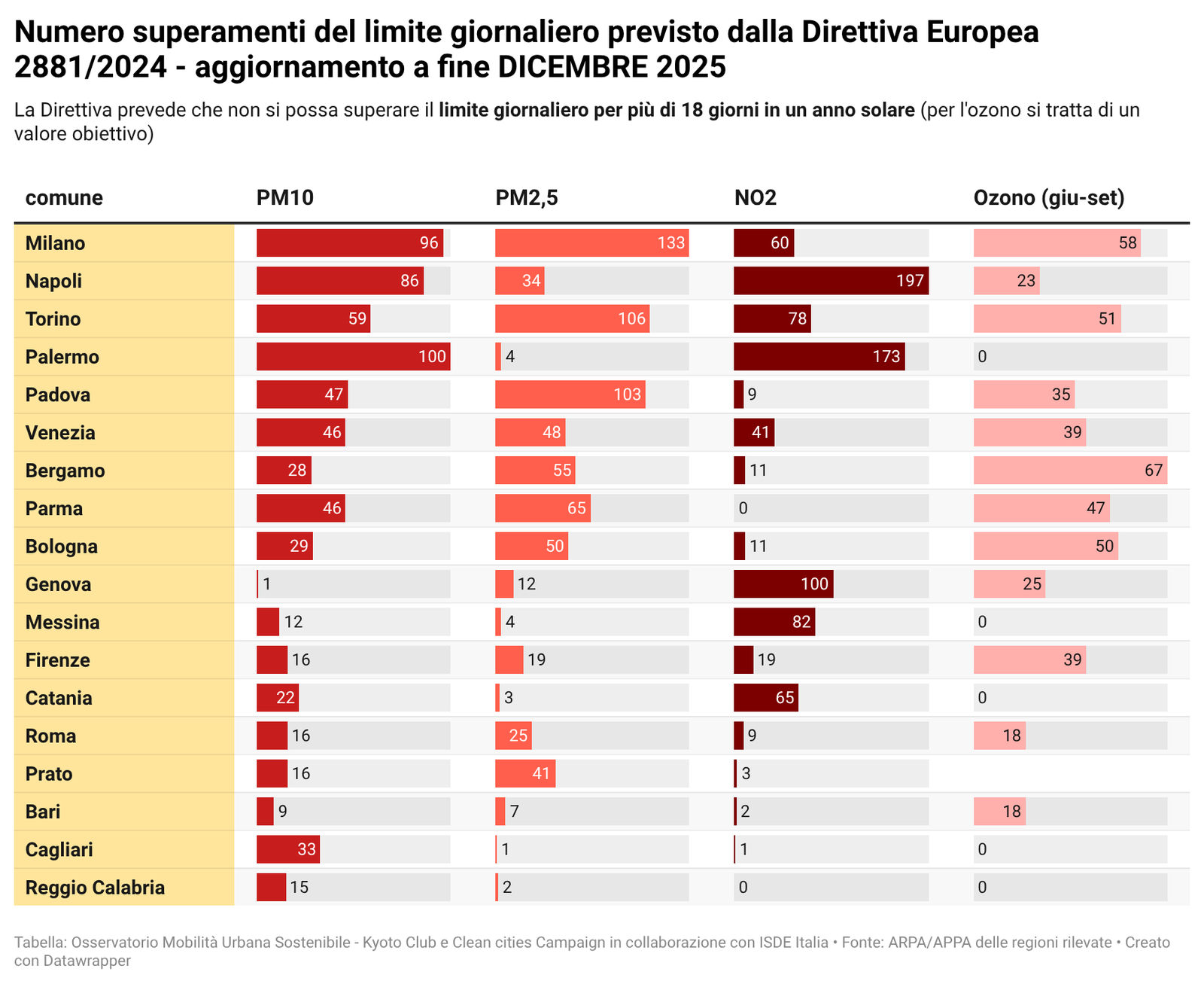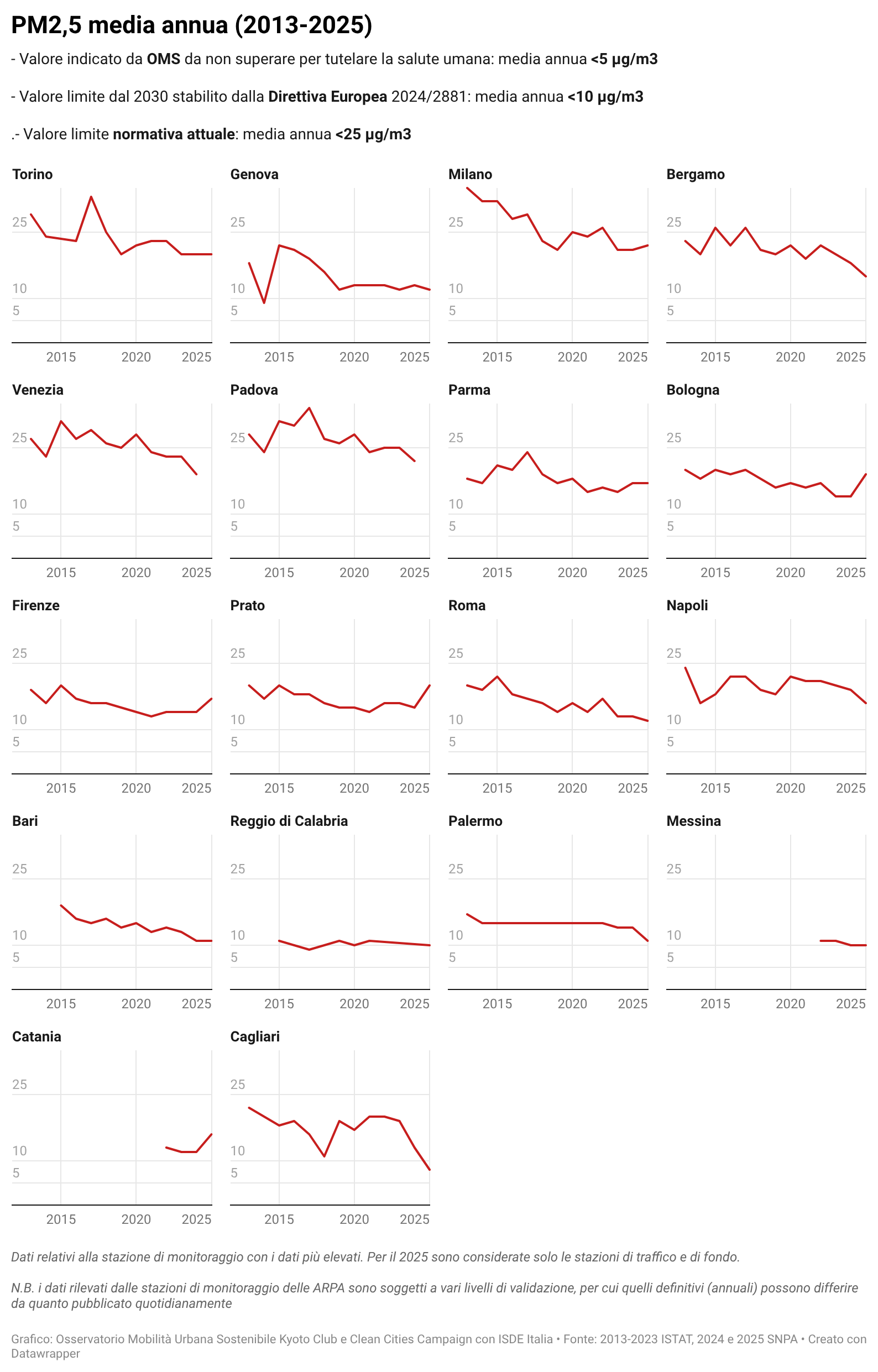 Per alcuni temi specifici sono riportati anche i dati più recenti resi disponibili da fonti attendibili quali l’Osservatorio Nazionale sulla Sharing Mobility, ISFORT, ecc. ovvero elaborazioni a cura dell’Istituto Inquinamento Atmosferico del CNR (IIA-CNR) sulla qualità dell’aria e di Kyoto Club sui PUMS e sul divario delle città rispetto ad obiettivi di mobilità sostenibile al 2030.