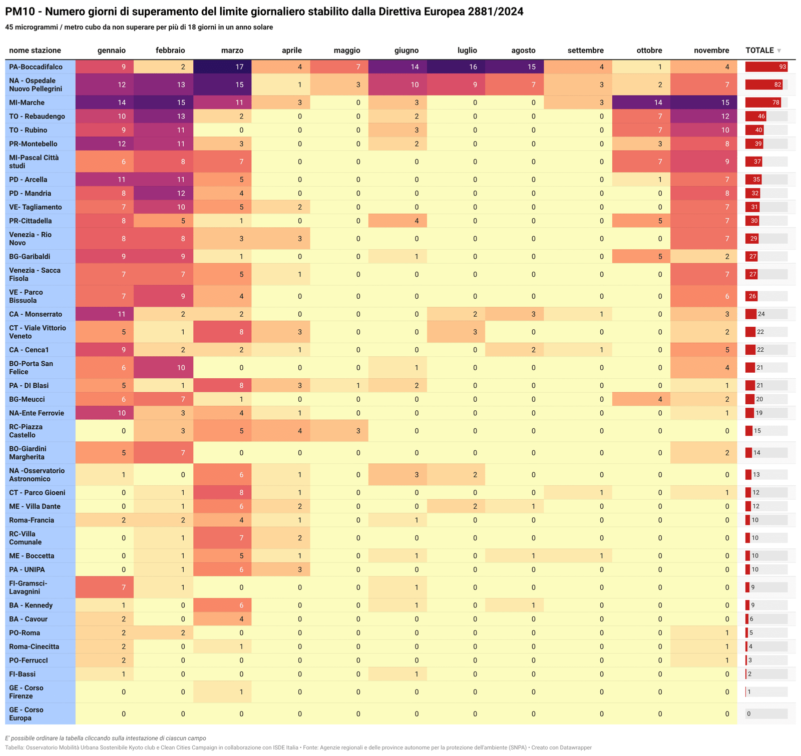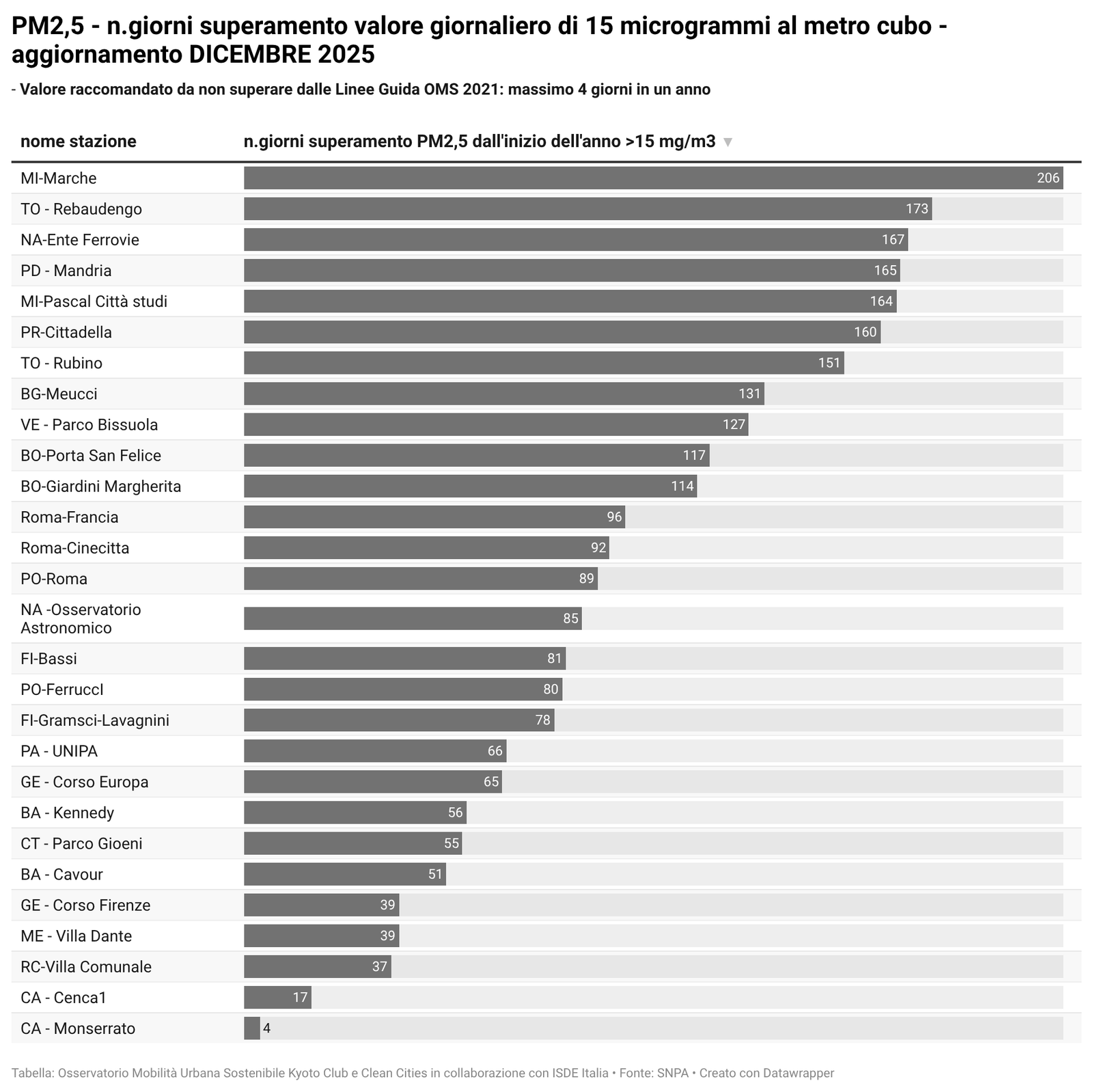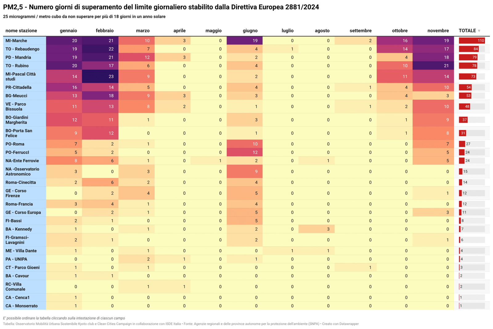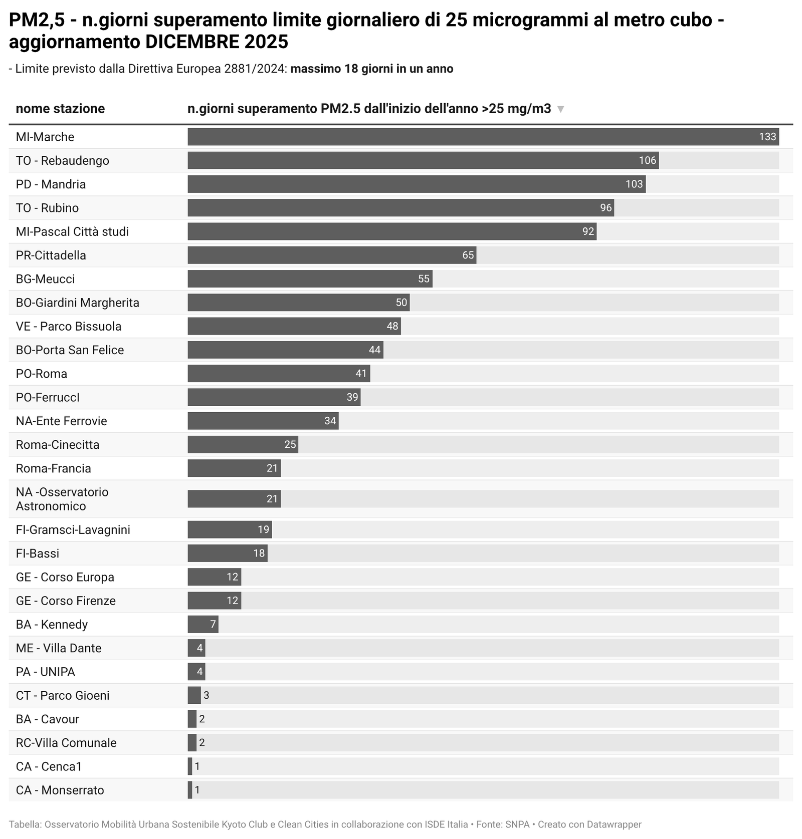 Per alcuni temi specifici sono riportati anche i dati più recenti resi disponibili da fonti attendibili quali l’Osservatorio Nazionale sulla Sharing Mobility, ISFORT, ecc. ovvero elaborazioni a cura dell’Istituto Inquinamento Atmosferico del CNR (IIA-CNR) sulla qualità dell’aria e di Kyoto Club sui PUMS e sul divario delle città rispetto ad obiettivi di mobilità sostenibile al 2030.