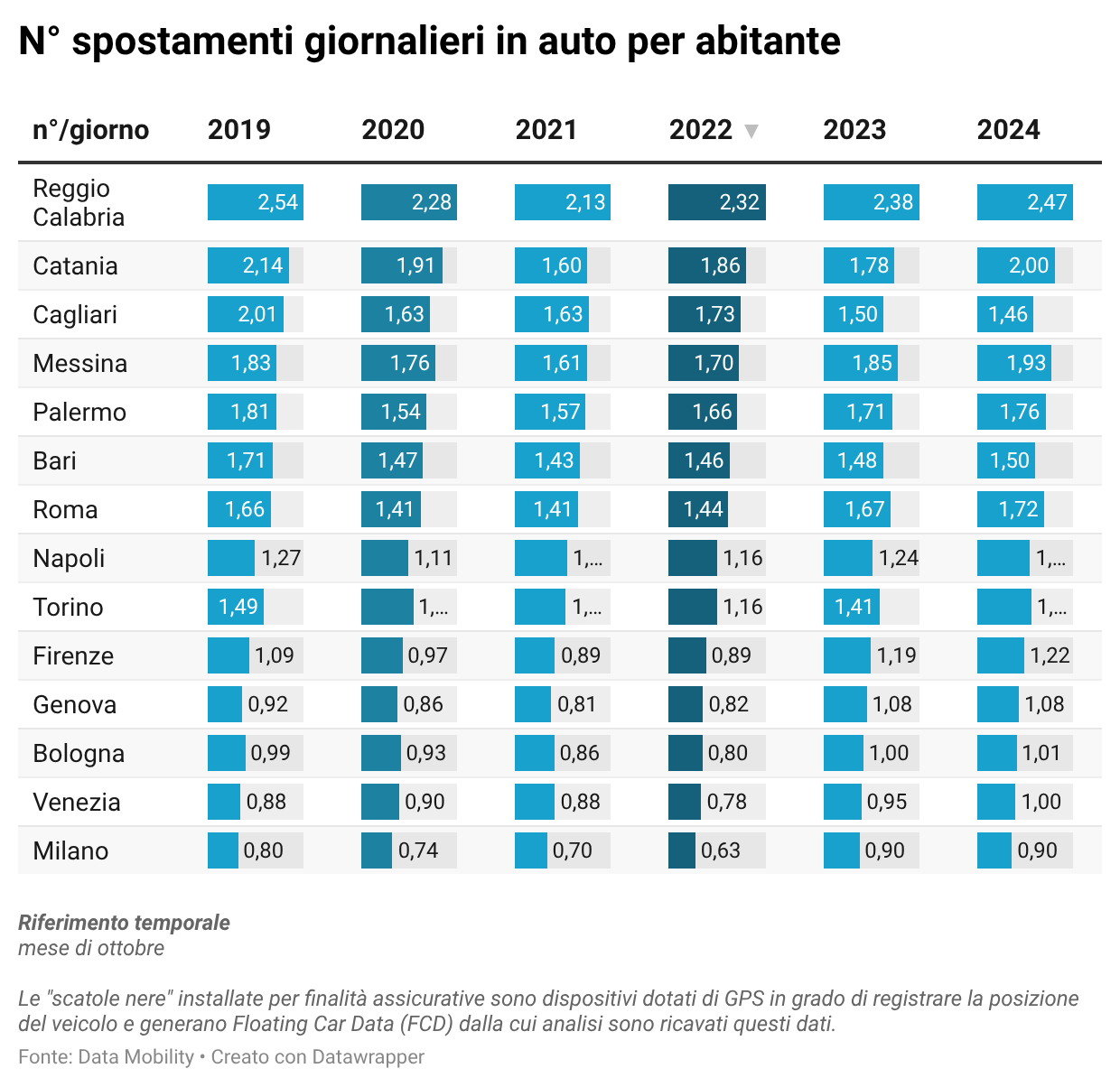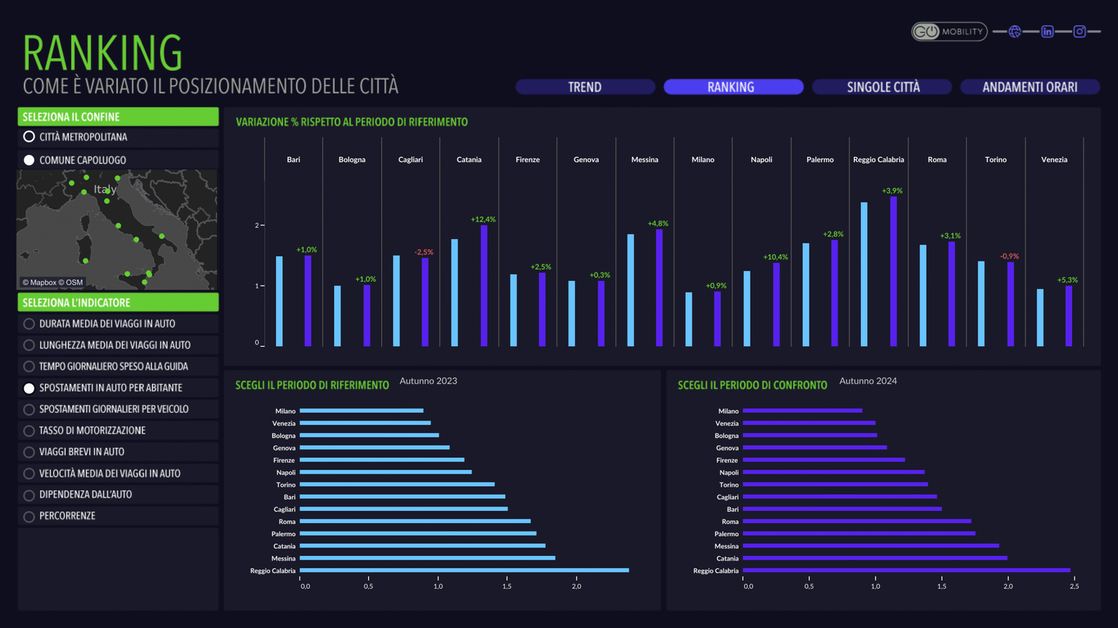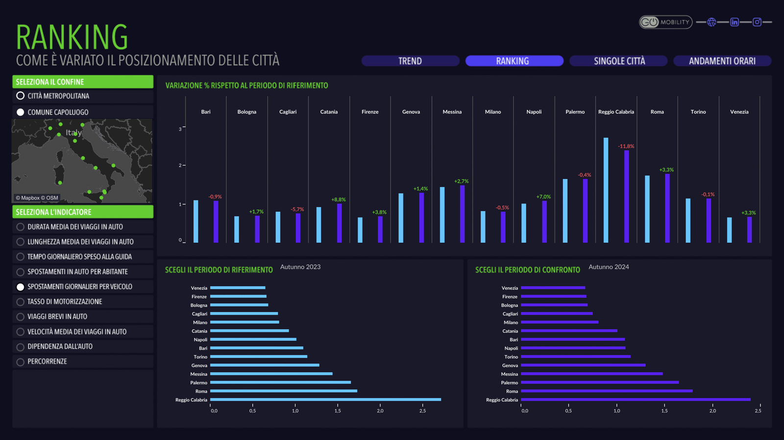 Da GO-Mobility i dati relativi all’analisi degli spostamenti delle auto sulla base dei dati delle “scatole nere”.