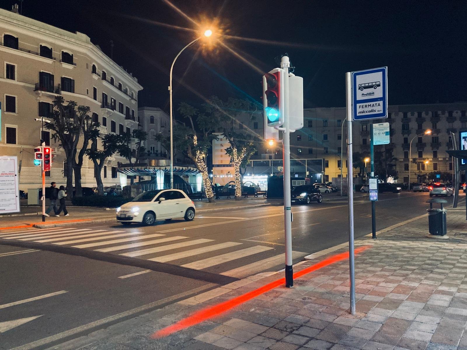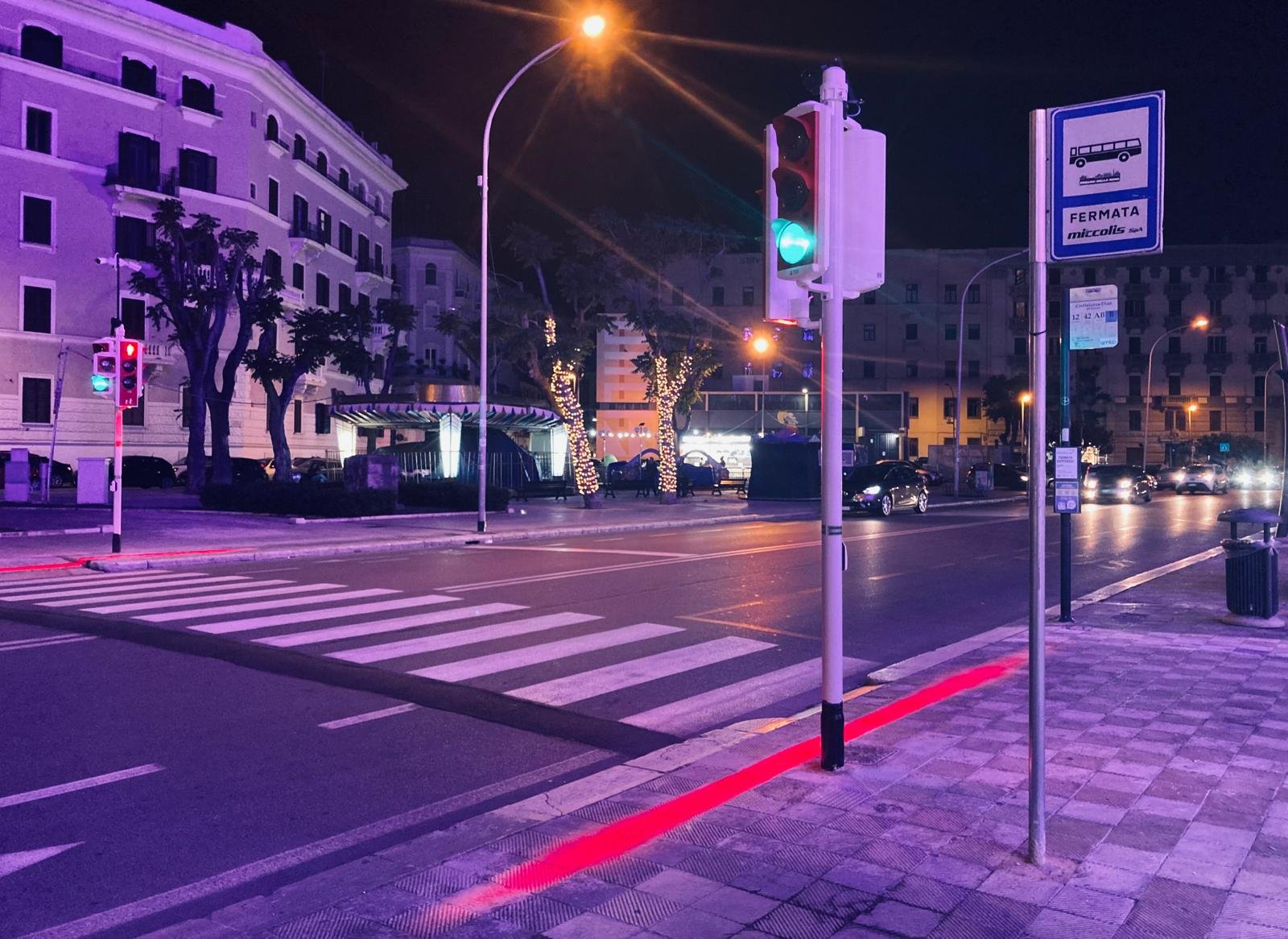 “I nuovi semafori a chiamata sono dotati di un sistema di illuminazione asimmetrica – spiega l’assessore alla Cura del territorio Domenico Scaramuzzi -. Al crepuscolo l’illuminazione si accende al 40 per cento, ma non appena il pedone attiva la richiesta di attraversamento, l’illuminazione aumenta fino al 100 per cento, di modo che l’area intorno alle strisce sia raggiunta da luci ancora più potenti rispetto anche alla normale pubblica illuminazione. Maggiore visibilità, dunque, significa più sicurezza. I nuovi semafori sono, inoltre, inclusivi, perché completi di ogni tecnologia e dotati di tutti i sensori sonori per agevolare il passaggio delle persone ipovedenti e non vedenti, con una voce guida disponibile grazie al pulsante dedicato. La proiezione di fasci di luce bianca e rossa mette ulteriormente in evidenza il punto previsto di stop del pedone. È importante sottolineare, ancora, che è sempre attivo il verde per le auto, tranne quando arriva la chiamata del pedone, dunque le nuove installazioni hanno un impatto minimo sui tempi di percorrenza del traffico veicolare. Nel frattempo in città continuano gli interventi di manutenzione ordinaria e straordinaria di tutti gli impianti semaforici: d’ora in poi, tutti i semafori che installeremo o adegueremo, utilizzeranno le stesse tecnologie dei cinque nuovi a chiamata. I numerosi lavori in corso sono nel segno dell’accessibilità. Nel centro città, per esempio, per garantire l’attraversamento agli utenti non vedenti o ipovedenti, stiamo adeguando le intersezioni tra via Quintino Sella e corso Vittorio Emanuele, tra via Quintino Sella e via Piccinni, tra via De Rossi e corso Vittorio Emanuele, l’angolo tra via De Rossi e via Piccinni, piazza Massari e piazza IV Novembre”.