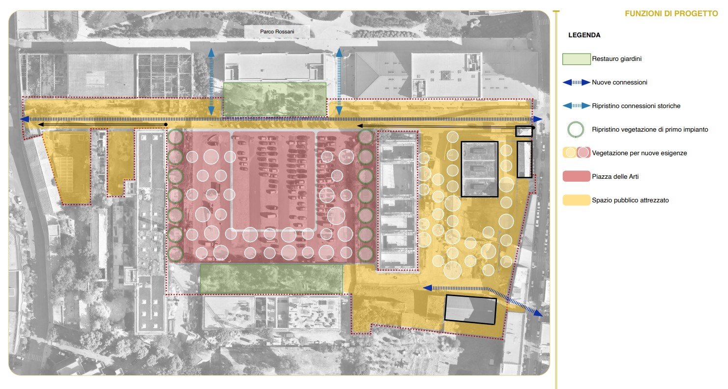 La giunta comunale, su proposta dell’assessore alla Cura del Territorio, ha approvato il documento di indirizzo alla progettazione redatto dalla società Dodi Moss S.r.l., relativo ai lavori per la nuova Piazza d’Arti e la riqualificazione delle aree esterne della ex Caserma Rossani, con la realizzazione del nuovo parcheggio interrato.