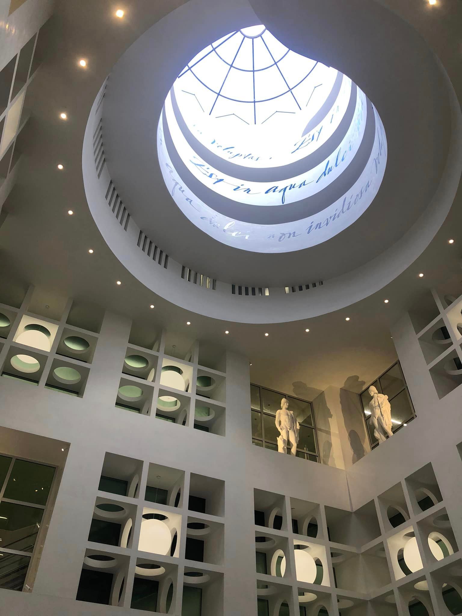 A condurci in questo lungo viaggio è Giove, Dio degli dei che ci invita a una discesa dolce per una lunga scala inondata di luce sul cui parapetto è iscritta la frase di Ovidio “Est in aqua dulci non invidiosa voluptas” che tradotta dovrebbe suonare più o meno come “Nel (bere) acqua dolce (vi) è un gioioso piacere”.