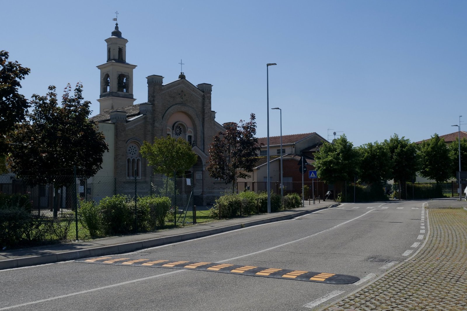 Attraversamenti pedonali rialzati, leggeri rialzi in asfalto rispetto al piano stradale realizzati per garantire la continuità dei percorsi pedonali, eliminare le barriere architettoniche e ridurre la velocità veicolare;