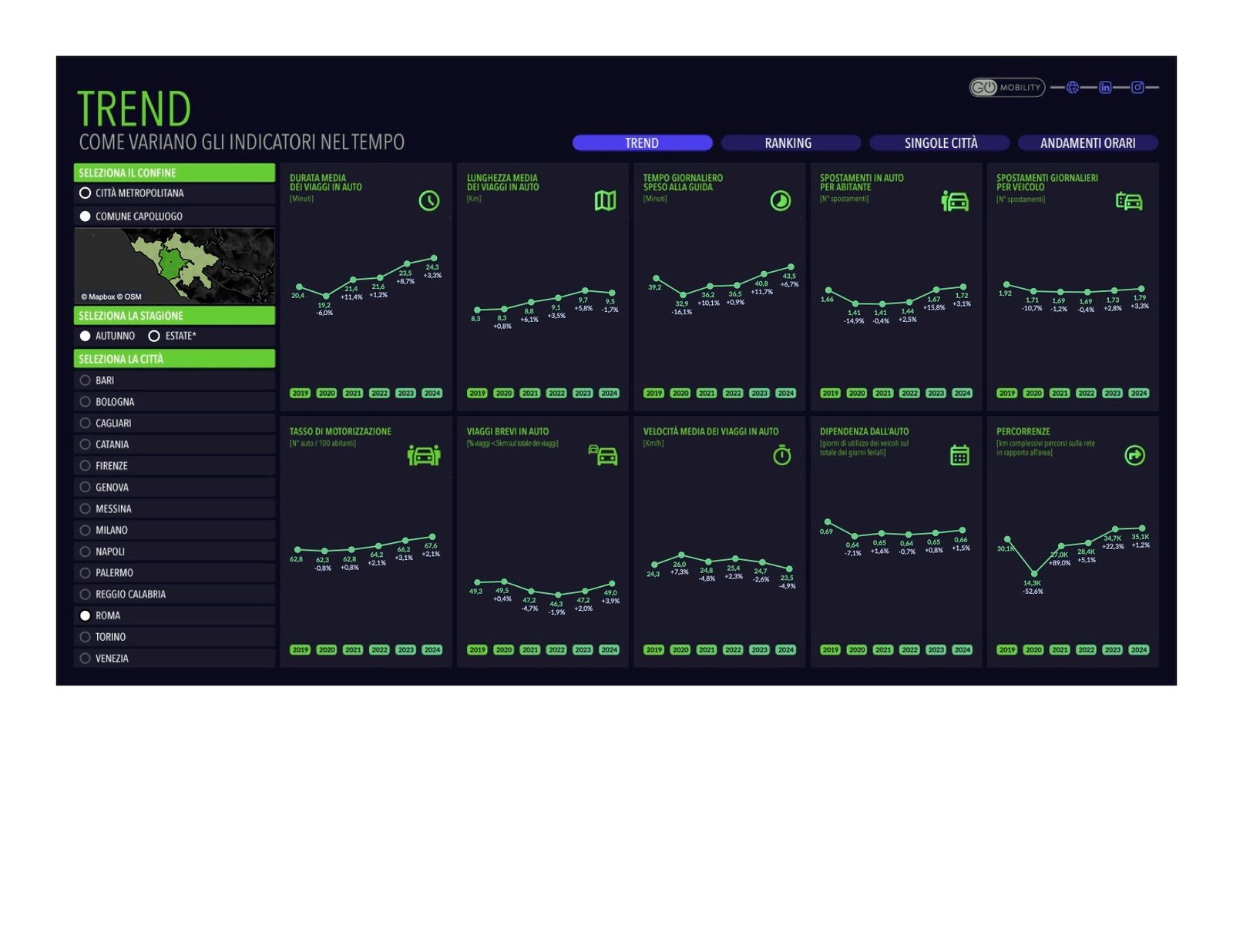 La serie di rapporti ZTL - Zone a Transizione Limitata geolocalizza le alternative di mobilità a livello di CAP in otto città italiane. Analizzando dati sull'offerta di trasporto pubblico, infrastrutture ciclabile, servizi di car sharing, e sul possesso di automobili private, il rapporto ZTL identifica gli "hotspot della mobilità insostenibile.