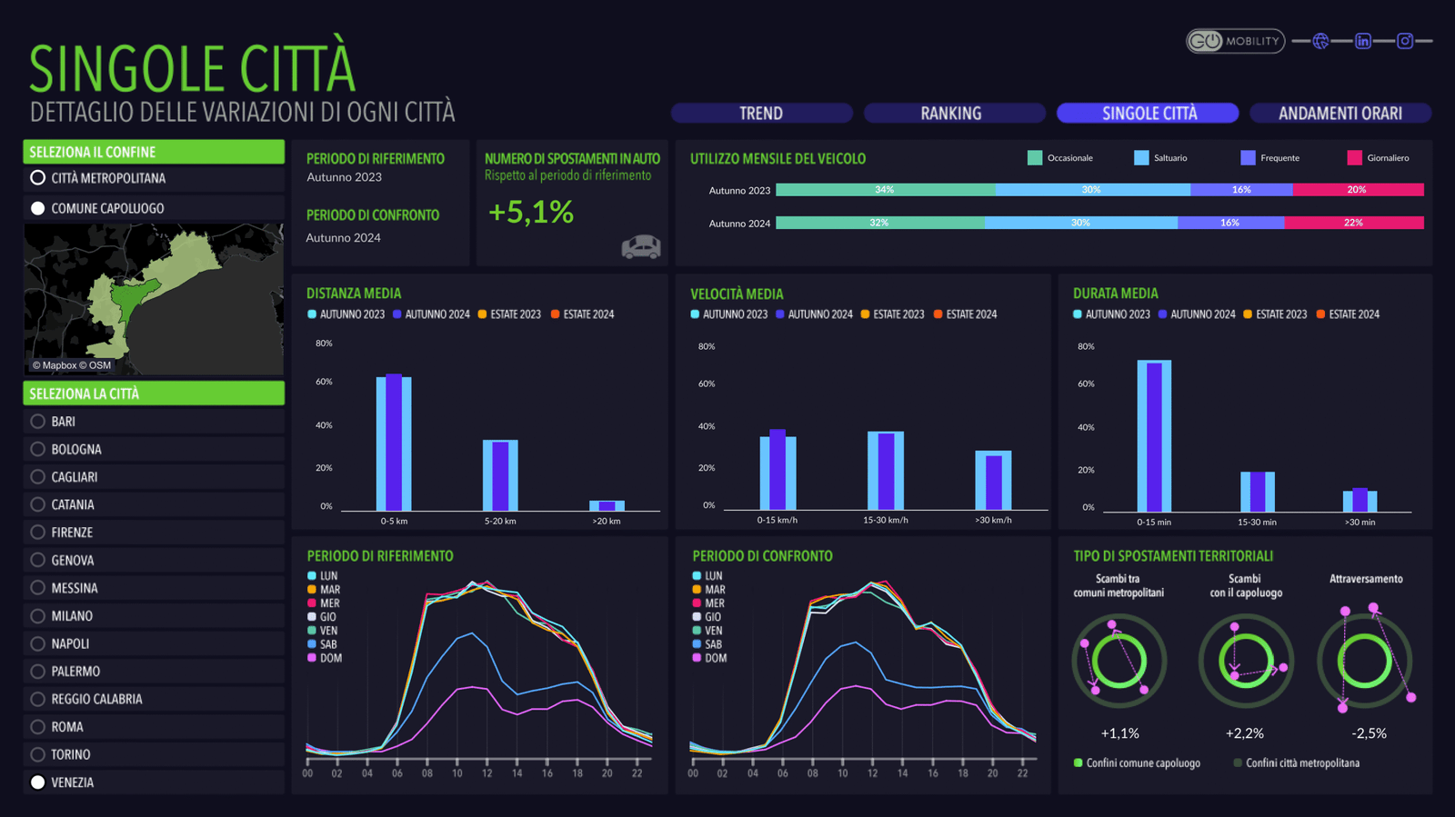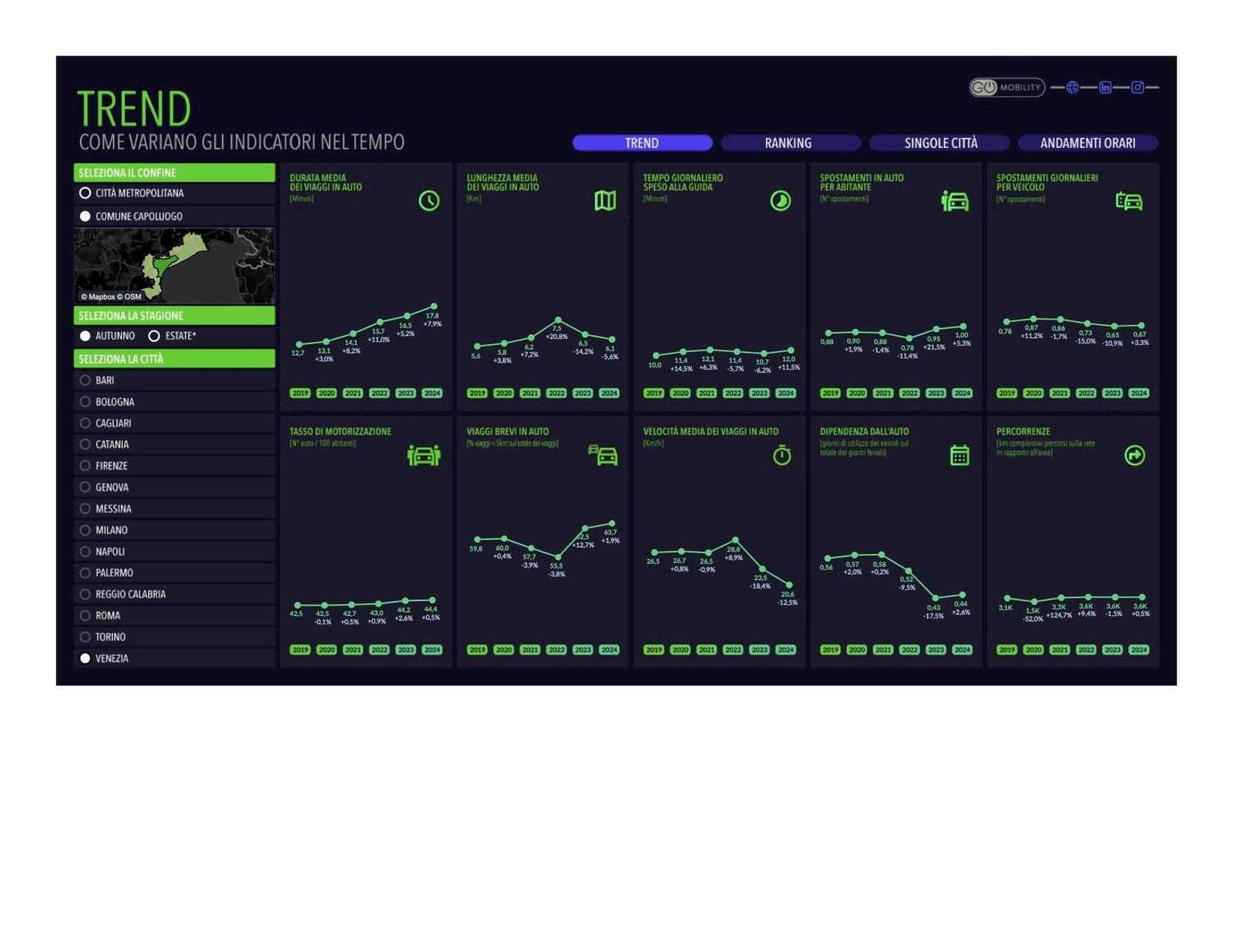 In questa pagina sono disponibili i dati sulla mobilità della città confrontati nel tempo e le notizie, aggiornate quotidianamente, sulle novità relative a trasporto pubblico, mobilità attiva, mobilità condivisa ed elettrica, regolazione del trasporto privato.